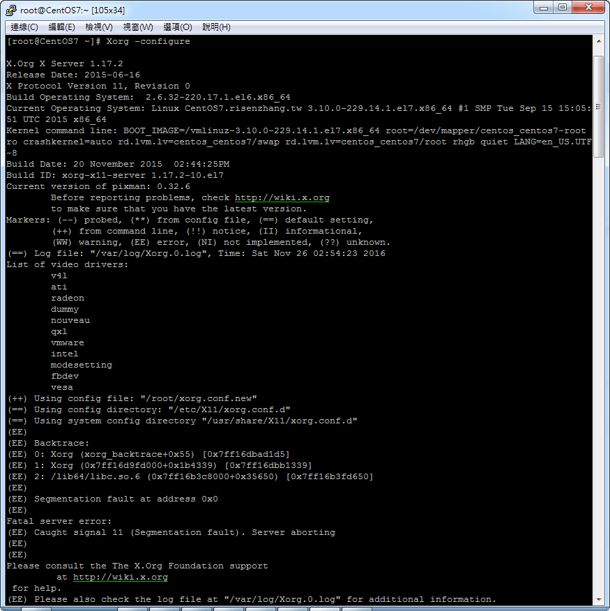 - 這邊看到錯誤不要慌!!!因為根本不重要,因為檔案一樣產生出來並放在 /root/xorg.conf.new 直接複製進行改名即可