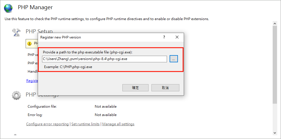 現在需要手動配置短路徑,默認的路徑超長會導致 PHP Manager 無法正常使用