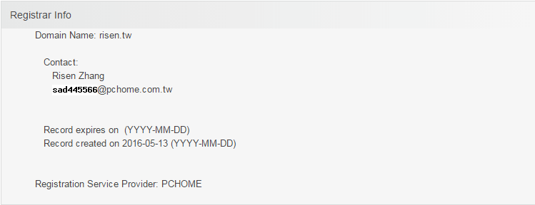 - 最後我選擇 Pchome 因為 Whois 的資訊相當乾淨 如附圖